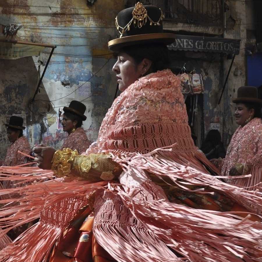 La cholita est une femme indigène, une Aymara, peuple qui vit sur les hauts plateaux andins. Elle se distingue par une tenue traditionnelle : le chapeau melon (plus ou moins haut, appelé "bombin"), la Jupe dite "pollera"et pas moins de 7 jupons "enaguas", un châle en macramé et elle arbore une coiffure composée de deux très longues nattes reliées ensembles par la "tula".